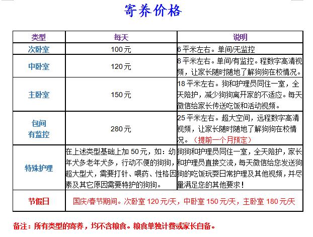 寄養(yǎng)價格